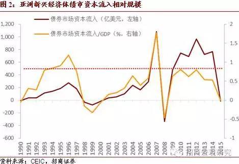 一、亞洲新興經(jīng)濟(jì)體債券市場(chǎng)國(guó)際資本流動(dòng)目前處于周期低位