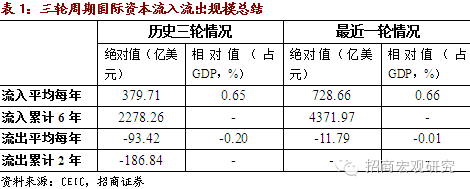 我們重點(diǎn)參考過(guò)去三輪周期波動(dòng)中,債券市場(chǎng)國(guó)際資本流動(dòng)與GDP平均比值的波動(dòng)情況進(jìn)行估算。如果假定2016年開始新一輪周期,國(guó)際資本流入6年,流出2年,則未來(lái)的5年間中國(guó)債券市場(chǎng)將吸引4000-4400億美元的國(guó)際資本流入。
