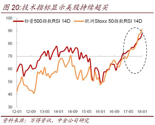 目前美國10年期國債收益率已經回到2013年的水平。我們在1月中旬做的市場調查中,投資者普遍認為今年美國10年期國債收益率的高點可能在2.9%以下(圖13)。但按照目前的形勢,美國國債收益率有可能會繼續走高,下一個關鍵點位是3.0%。如果美國國債收益率以較快的速度上升,那么毫無疑問會將全球債市拉入熊市,同時對風險資產的壓力也將顯露出來。周五全球股市和商品的暴跌反映了市場開始擔心全球流動性較快速度收縮。畢竟次貸危機后的這些年,全球股市、房產等風險資產都依賴于寬松的流動性環境,一旦寬松的流動性環境不再,資產的流動性溢出效應面臨重定價。