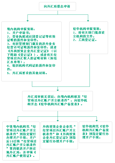 1.開立經(jīng)常項(xiàng)目外匯賬戶。