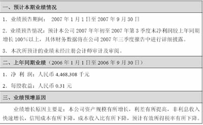 繼深圳發(fā)展銀行之后,招商銀行今天也發(fā)布了今年第三季度業(yè)績大幅預增公告:預計今年前三個季度凈利潤較上年同期增長100%以上,即高于89.36億元。