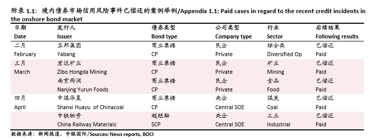 5月份,隨著一些初期出現(xiàn)債務(wù)償付困難的企業(yè)最終完成了兌付,市場(chǎng)的憂慮得以部分緩解(見附錄 1.1)。例如,國(guó)有的中鐵物資 4 月份曾警示 其運(yùn)營(yíng)下滑,正在設(shè)法安排債券的到期兌付,其后終于能如期全額兌付了 5 月 17 日到 期的債券。