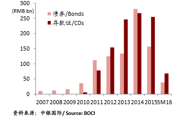 而投資者對(duì)企業(yè)債供應(yīng)的渴求加重,離岸人民幣債券收益率在 5月份進(jìn)一步收窄。