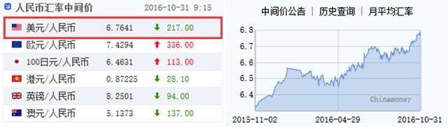 今日人民幣兌美元中間價大幅上調217個基點,報6.7641,上調幅度為逾一個月最大。上一交易日(10月28日)中間價報6.7858,曾創(chuàng)六年新低。在岸、離岸人民幣雙雙走高。