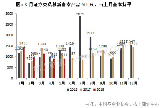 1、私募產品:5月新備案產品911只,與上月基本持平