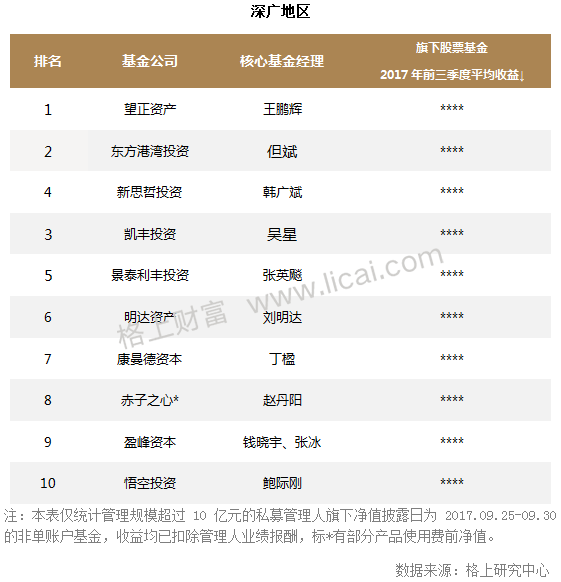 格上研究中心注意到,與2017年二季度相比,源樂晟資產、凱豐投資和高毅資產3家機構新晉三季度百億級名單。新晉私募機構主要因業績增長,吸引資金不斷流入致總規模增加。據格上研究中心統計,在股票型陽光私募前三季度巔峰榜上,源樂晟資產以34.01%的平均收益奪得北京地區魁首,凱豐投資也獲得了28.23%的平均收益,旗下凱豐宏觀對沖9號在宏觀對沖策略排行榜上位居第二。