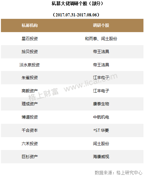 隨著上市公司2017年中報的陸續披露,知名私募二季度的投資動向漸漸揭開了面紗。格上研究中心數據顯示,截至8月6日,共有244家上市公司發布了2017年中報,在這些公司的前十大流通股東中不乏像淡水泉投資、千合資本、星石投資等知名私募的身影。值得注意的是,今年以來不少私募重倉股表現亮眼,其中淡水泉投資持有的“萬華化學”今年以來漲幅超過90%,星石投資持有的“水井坊”今年以來漲幅也超過70%。
