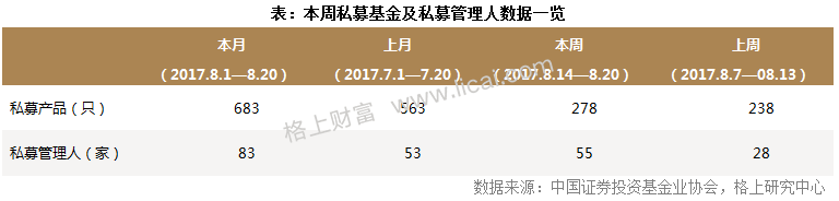 【備案數據】本周新備案證券類產品278只,新備案私募管理人55家
