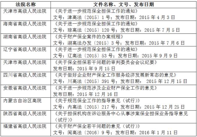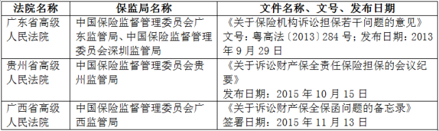 (二)各地方法院對訴訟財產保全責任保險的立法態度