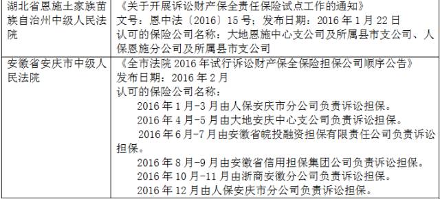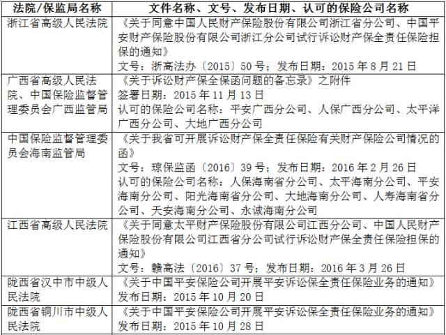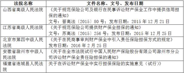 1、各地方法院認可訴訟財產保全責任保險的形式