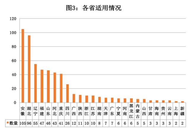 (三)各省份適用情況差距懸殊,且在同一省份內以典型法院的適用為主