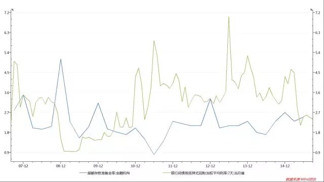 充分市場化的利率應由資金供求關系所決定。貨幣市場資金總量主要受法定存款準備金率變動、央行公開市場操作、外匯占款、節假日提現、財政存款變動等因素影響,上述因素共同作用于金融機構超額準備金率,該指標也成為反映市場資金余缺狀況的重要參照。貨幣市場利率水平與金融機構超額準備金率成負向變動關系(如下圖),對金融機構超額準備金率水平的預測是資金交易員預判貨幣市場及利率走勢的重要內容。市場資金需求包含機構杠桿水平、新股申購等因素,在打新需求旺盛時期,資金供不應求,貨幣市場利率也相應上升。