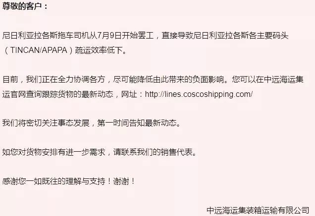▲中遠(yuǎn)關(guān)于尼日利亞碼頭效率低下的風(fēng)險(xiǎn)提示
