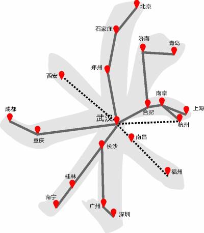 此外,中國鐵路總公司黃民表示,“十三五”時期,將完善武漢至周邊中心城市的放射狀、大能力、高標準通路,重點推進武漢至鄭州北京、南京上海、杭州、東南福州、長沙廣州、重慶成都、西安西北七個方向的高鐵建設。