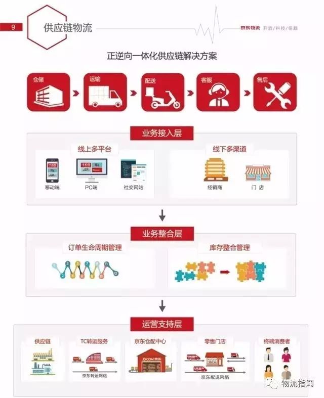 京東將商流+系統(tǒng)服務+倉配一體化+供應鏈大數(shù)據(jù)+供應鏈金融等融為一體,這個服務在電商這個時代是獨樹一幟的。