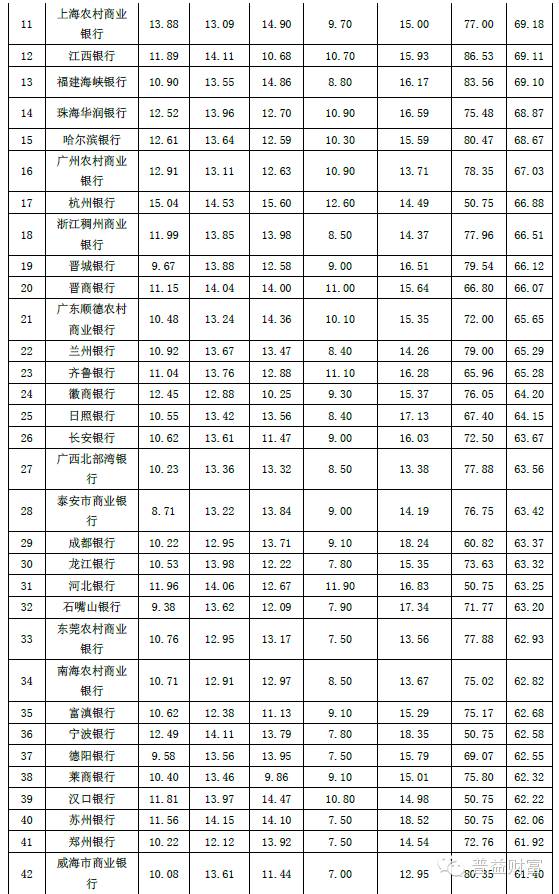 排名前五的全國性銀行依次為交通銀行、民生銀行、華夏銀行、招商銀行、興業銀行。收益能力排名前十的區域性銀行依次為南京銀行、江蘇銀行、營口沿海銀行、東營銀行、青島銀行、寧波東海銀行、深圳農商、東莞銀行、杭州銀行、貴州銀行。