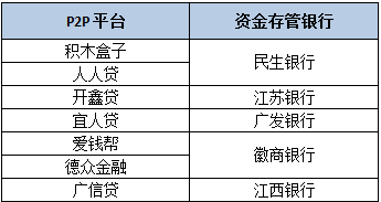 接入銀行資金存管的7家P2P平臺(tái)名單