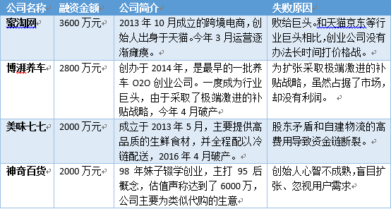 如果說2015年是資本和創(chuàng)業(yè)者的冬天,那么2016年則是一場更加冷酷的寒冬,今年以來,國內死去的明星創(chuàng)業(yè)公司如下: