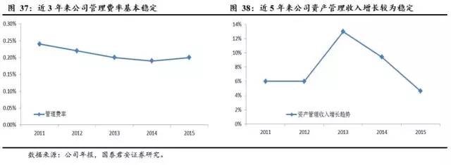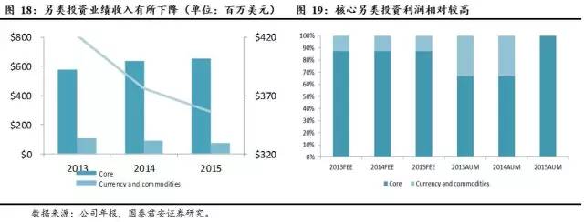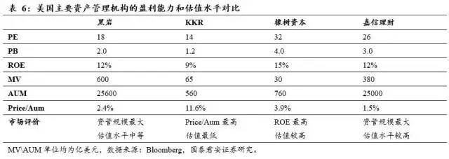 美國沃克爾法案實施后,投資銀行因衍生品業(yè)務(wù)風險敞口高,發(fā)展自營業(yè)務(wù)受限,估值中樞下滑。而一方面,資產(chǎn)管理機構(gòu)業(yè)務(wù)模式主要依托管理費收入,投資收益收入占比低,周期屬性弱于證券公司,同時資產(chǎn)管理機構(gòu)業(yè)務(wù)擴張不依賴大量占用資本,故估值中樞高于證券公司。相對于投行,資產(chǎn)管理機構(gòu)更是一門好生意。