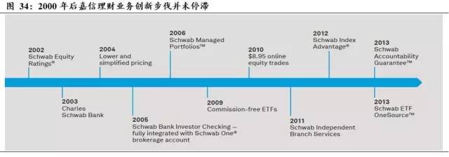 由下圖知,公司資管收入中共同基金服務(wù)費近年來有所下降,而投資管理咨詢費及其他收費則有所上升。這由于2000年后,隨著投資者對研究服務(wù)依賴度提升,嘉信理財退出了不收取咨詢費用的“共同基金全一賬通”服務(wù)。