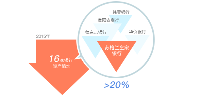 出現資產縮水,比去年多了7家,其中有11家為外資行。2015年以來,銀行業凈利增速逐漸放緩,多家外資行更出現了盈利跳水的情況,紛紛做出了“減倉”中國的舉動。5家銀行資產縮水20%以上,蘇格蘭皇家銀行連續兩年成瘦身最多的銀行。