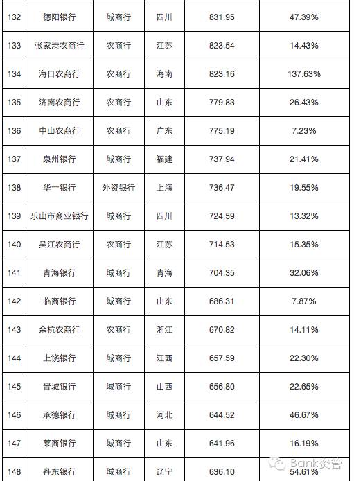 銀行子榜單中,3家銀行資產增長率超100%,分別是:海口農商行(137.63%)、廊坊銀行(124.51%)和唐山銀行(118.05%),其中廊坊銀行連續兩年成為資產增速亞軍,今年成功邁入“千億俱樂部”。