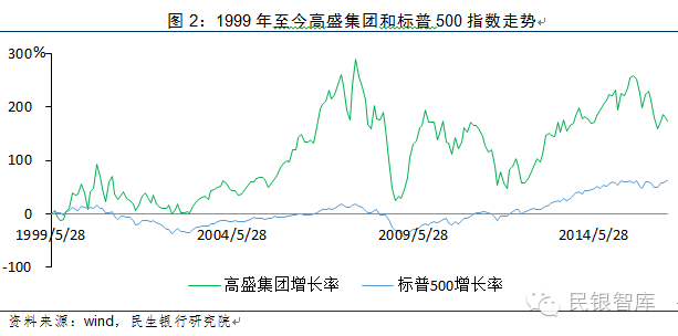 長期來看,高盛盈利能力和經營穩(wěn)健程度顯著高于同業(yè)。上市以來股價累積增長率更是顯著跑盈大市,與S&P500指數相比較,超額收益率在100%以上。更為重要的是其作為五大行中其中兩家存活下來,避免了破產倒閉的厄運,是金融危機中五大行表現最穩(wěn)健的一家投行。