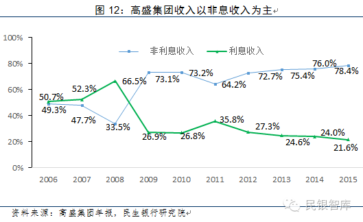 (2)以手續(xù)費收入為主:機構業(yè)務為主,投行、投資和資管次之