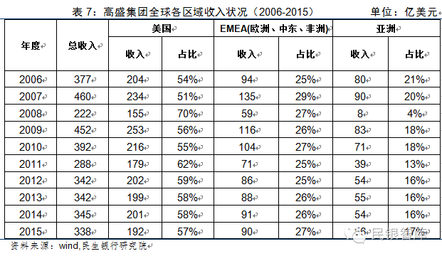 后危機時期,國外投行紛紛借助多元化發(fā)展來提升抗周期能力,應對盈利下滑的壓力。很多金融機構改變了商業(yè)模式,部分機構開始從事零售業(yè)務或者從國際擴張轉向國內市場。但是高盛并沒有改變核心戰(zhàn)略,其仍然專注于投資銀行業(yè)務,仍主張全球化運營。