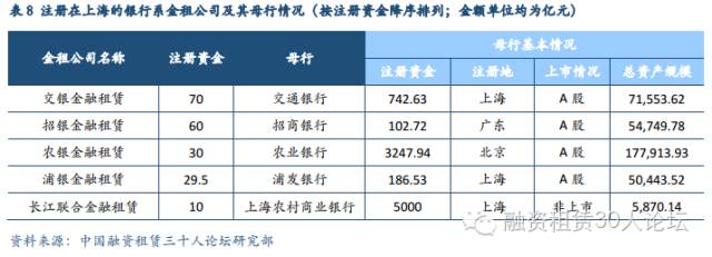 而注冊在北、上、廣、天津,尤其是上海、天津的銀行系金租公司,其參股銀行基本上是資產規模龐大的“大巨頭”,以國有商業銀行和股份制商業銀行居多。