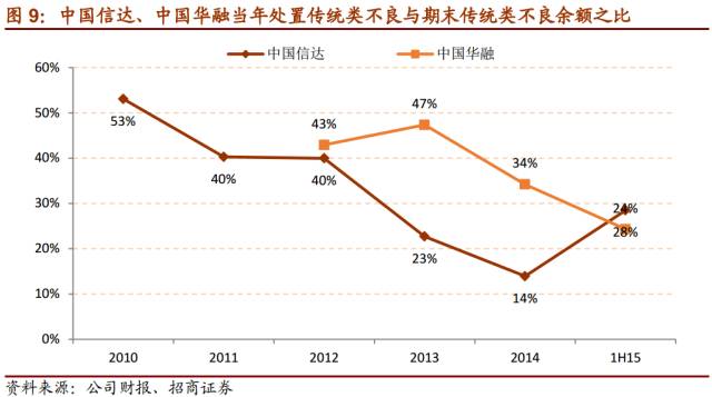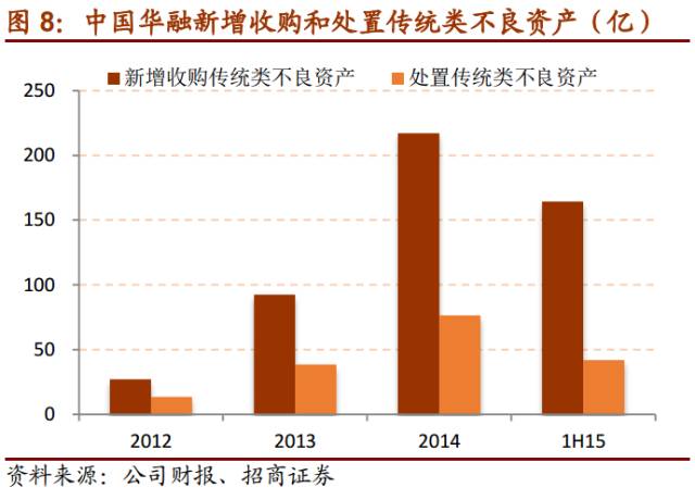 量:當期處置不良資產滯后于不良資產規模增長。信達、華融新收購的不良從2013年開始出現快速增長,但處置不良的放量是從2014年開始,不良資產處置滯后于不良資產收購半年到一年。