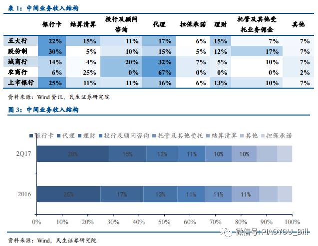 中間業務收入從不同的方面體現了銀行交叉銷售、投行業務、零售信用卡業務、資產管理能力。銀行在對企業客戶的對公業務進行定價時會綜合考慮客戶可以帶來的利潤,測算客戶可派生的中間業務收入。