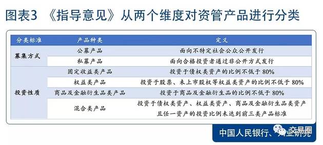 ② 【明確了公募與私募劃分,打破了監管割裂】將資管產品投資者分為合格投資者與不特定社會公眾兩類。公募產品面向不特定社會公眾發行,主要投資于投資風險低、流動性強的債權類資產以及上市股票。銀行如發行權益類產品和其他產品,須經銀監部門批準,但用于支持債轉股的產品除外。