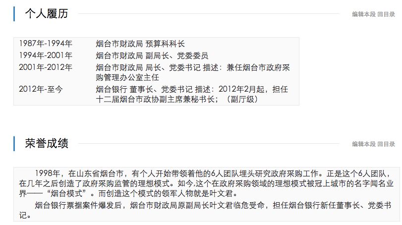 據煙臺市紀委監委網站7月4日消息,煙臺銀行股份有限公司原黨委書記、董事長葉文君涉嫌嚴重違紀違法,目前正接受紀律審查和監察調查。 據煙臺市紀委監委網站消息,煙臺銀行股份有限公司原黨委書記、董事長葉文君涉嫌嚴重違紀違法,目前正接受紀律審查和監察調查。 葉文君公開履歷顯示,葉文君于1987年-1994年任煙臺市財政局 預算科科長;1994年-2001年任煙臺市財政局 副局長、黨委委員;2001年-2012年 煙臺市財政局 局長、黨委書記 描述:兼任煙臺市政府采購管理辦公室主任;2012年起任煙臺銀行董事長、黨委書記;2012年2月起,擔任十二屆煙臺市政協副主席兼秘書長;2013年1月,葉文君不再兼任政協第十二屆煙臺市委員會秘書長職務。 資料顯示,2013年8月,葉文君的董事長任職資格獲得原山東銀監局核準,正式掌管煙臺銀行。2018年10月,因退休,葉文君辭去了煙臺銀行董事、董事長職務,由吳明理接任。 根據煙臺銀行官網介紹,煙臺銀行成立于1997年11月,總股本26.5億元,股本結構呈多元化、科學化、國際化,現山東省最大民營企業之一南山集團為第一大股東,香港恒生銀行為境外戰略投資者。 煙臺銀行實行“一級法人、統一管理、分級負責”的管理體制。目前,總行設立18個職能部室、5個事業部。下轄80余處經營機構,分布于煙臺市七區及龍口、招遠、萊州、蓬萊、海陽、棲霞、萊陽、長島8個縣市區,在威海、東營設有兩家異地分行。 截至2018年末,全行資產總額達到864億元,各項存款余額598億元,各項貸款余額381億元。年報顯示,2018年煙臺銀行實現營收18.71億元,同比增長6.43%;凈利潤2.05億元,同比下降55.91%。煙臺銀行去年的資產減值損失同比增長了109.36%至8.3億元。占到了該行營業支出的一半以上,而在2017年,這一占比僅約34%。 今年以來,已有多家銀行高管被查。根據《中國紀檢監察報》近日報道,今年以來,各級紀檢監察機關持續加大金融領域反腐力度,加強對金融機構、金融監管部門主要負責人和高中級管理人員的監督。