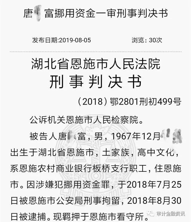 挪用次數如此頻繁又怎么會不被人察覺?2018年8月30日,唐某富被恩施市公安局逮捕。
