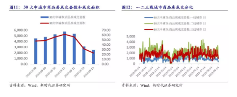 降準對房地產市場利好有限,前三十大中城市商品房成交面積多數回落。上周,央行發布公告稱決定于916日下調金融機構存款準備金率0.5個百分點,并對部分城商行定向下調存款準備金率1個百分點,但央行降準對房地產市場影響有限,目前在“房住不炒”的政策底線下,房地產開發貸仍處于收緊狀態,樓市銷售旺季不旺。其中,一線城市商品房成交環比下降幅度增加,一線城市成交4160套,較上周下降558套;二線城市成交13363套,下降1079套;三線城市成交7421套,較上周下滑2804套。