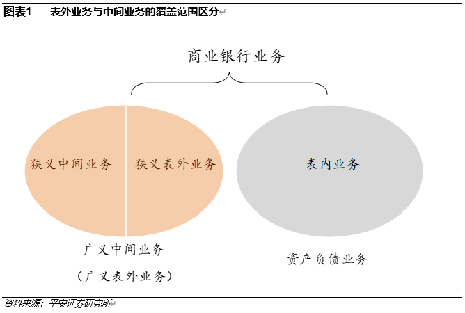從業務風險大小也可以區分狹義的表外業務與中間業務,一般來說,狹義的表外業務是具有一定潛在風險的業務,而狹義的中間業務風險很低甚至沒有風險。考慮到本系列專題后續還會有“中間業務篇”,且本篇專題更多集中于表外理財以及理財子公司等內容,所以本文所涉及表外業務均指狹義表外業務。