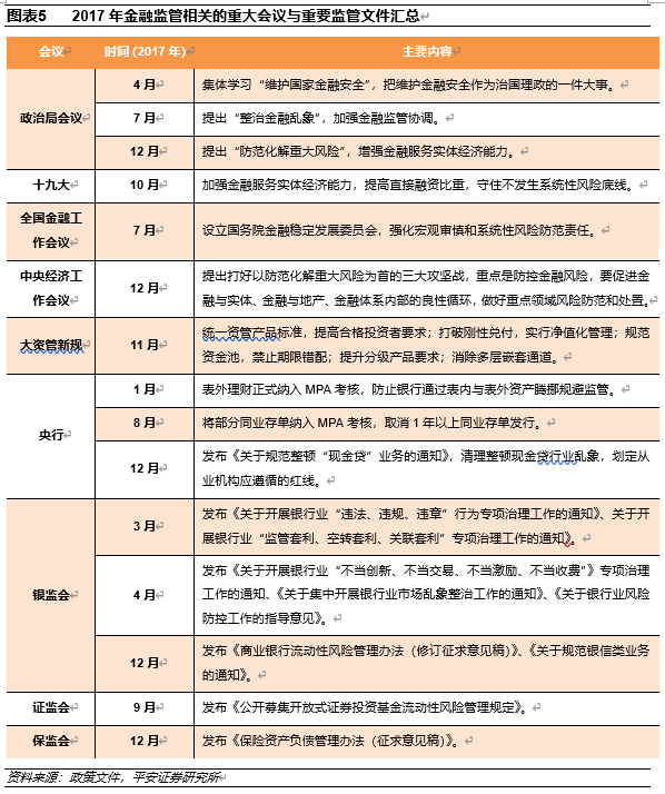 從業務模式來看, 2008-2013年,表外業務處于新興發展階段,“理財產品—通道業務—非標資產”是其主要模式,非銀金融機構在其中僅發揮“通道”的中介作用,并不真正進行資產管理。隨著《關于規范商業銀行理財業務投資運作有關問題的通知》(銀監發8號文)的出臺,理財資金投資非標業務得到嚴格管制,中國表外業務的主要模式由通道模式轉變為同業模式。2013-2016年,表外業務發展不斷深化,“同業業務—委外投資—債券等標準化資產”成為其主要模式。隨著同業存單、同業理財等創新業務陸續興起,買入返售、應收款項類投資也成為非標資產的主要形式。表外業務的興起帶來了金融市場的蓬勃發展和金融業增加值/GDP比例迅速攀升,“金融空轉”和資金“脫實向虛”不斷演化,相關的金融風險也不斷積聚。
