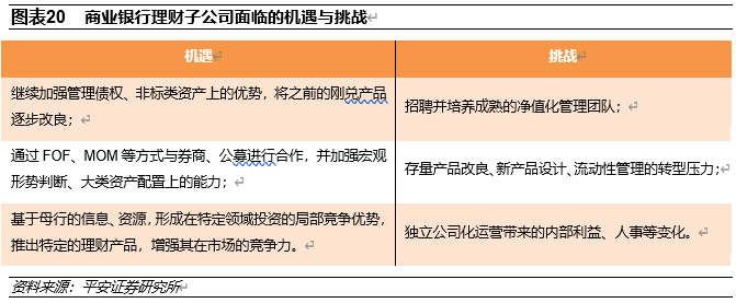 盡管理財子公司在債權、FOF與特色業務上均存在大量機遇,但也面臨人才配置、轉型壓力、運作模式轉變所帶來的挑戰。