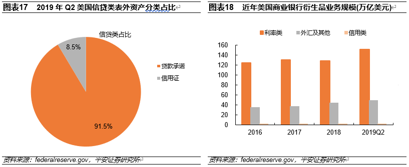 3.2 美商業銀行表外規模龐大品種豐富,資產服務、信貸、衍生品種類齊全