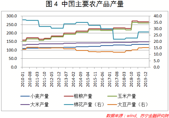 最后是草地貪夜蛾,草地貪夜蛾起源于美洲大陸,2016年起傳播至亞洲和非洲各國,并于2019年1月起,陸續在中國19個省出現,對農業生產產生了較大的影響。但從目前來看,我國的主要農產品的產量并未受到明顯的影響(見圖4)。