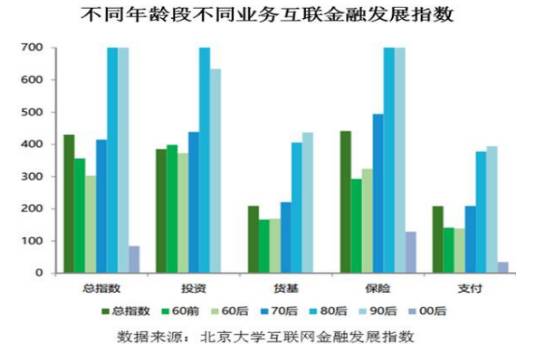 北京大學互聯網金融研究中心2016年7月發布的最新一期“互聯網金融發展指數”報告顯示,自2014年1月至2016年3月,“60前和90后是互聯網金融縱向增長的排頭兵,這說明互聯網金融正在向年齡的兩端滲透”(參見下圖)。