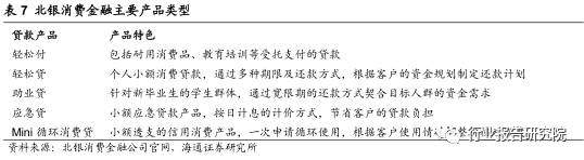 商業(yè)銀行:以線下渠道為主,主要是傳統(tǒng)信貸的轉(zhuǎn)型,注重產(chǎn)品創(chuàng)新和場景延伸。商業(yè)銀行的消費金融產(chǎn)品包括信用卡、汽車貸、消費貸等,由銀行基于申請資料向客戶發(fā)放貸款。