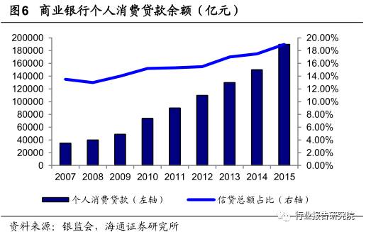 一方面,隨著商業(yè)銀行模式的轉(zhuǎn)變,使得銀行業(yè)更加重視零售業(yè)務(wù),而消費金融成為信貸資源重點領(lǐng)域;另一方面,商業(yè)銀行面臨著來自互聯(lián)網(wǎng)巨頭的挑戰(zhàn),銀行信貸模式開始轉(zhuǎn)變。事實上銀行在從事消費金融方面存在著客戶基礎(chǔ)強大、龐大的銀行卡及信用卡體系、大量營業(yè)部網(wǎng)點等優(yōu)勢。