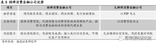 與無牌照公司相比,持牌系消費金融公司具有明顯優(yōu)勢。《消費金融公司試點管理辦法》規(guī)定,持牌系消費金融公司可以通過境內(nèi)股東存款、同業(yè)授信、同業(yè)拆借、發(fā)行金融債權(quán)等方式融資,而無牌照公司則多只接受股東和子公司存款以及P2P網(wǎng)貸。