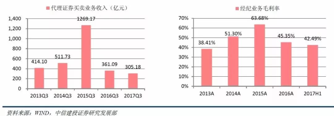 我們知道證券代理買賣業務在交易所的成本約為1%%,信息技術費用大約1.5%%,兩項加總即經紀業務的總成本區間2%%-2.5%%。