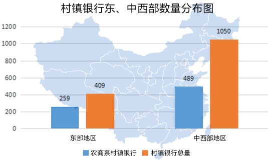 圖3 我國東、中西部村鎮銀行數量分布圖