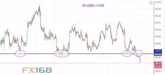 從上圖中可以看到,89.5是美元指數的一個支撐位,前三次這個支撐位都成功“撐住了”,但這次卻沒有撐住,美元指數直接破位,這意味著美元指數在經歷震蕩之后最終仍選擇了向下突破,或進一步打開下行空間。
