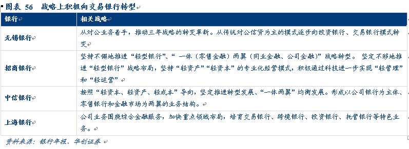 具體地,在戰略上國內商業銀行積極向交易銀行轉型,業務上大力發展非息業務,經營管理上重點建設金融科技銀行。