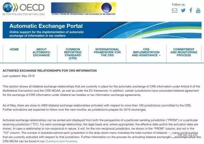 CRS信息2019年5月有效交換關系 來源:OECD官網